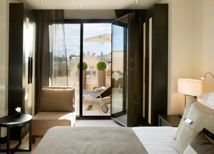 Parquet au sol, mobilier design, tons de beige et de gris, lignes claires, éclairage soigné, salles de bain en granit font partie du décor des vastes et lumineuses chambres de cet hôtel qui en compte 72. Les équipements (TV Loewe, produits de bain Bulgari, dock pour iPod) montrent clairement la volonté d’Alma de concurrencer les meilleurs hôtels de la ville. Grande terrasse en et mini-spa pour couronner le tout.