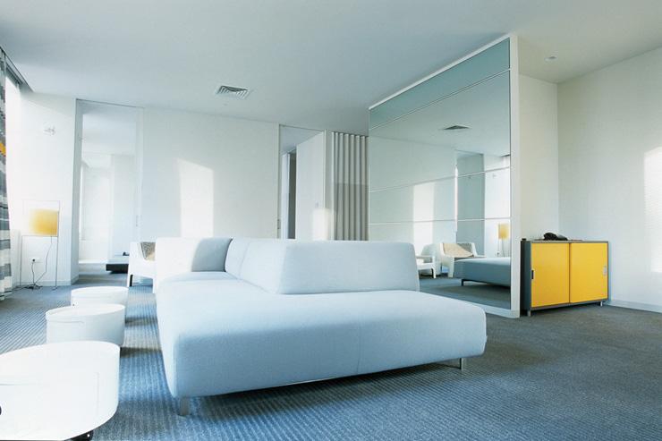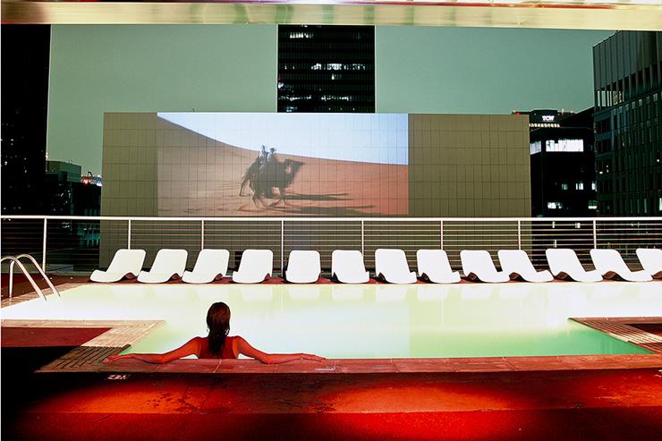 Le rooftop avec piscine chauffée, gazon synthétique rouge et fêtes décadentes pour fashionistas