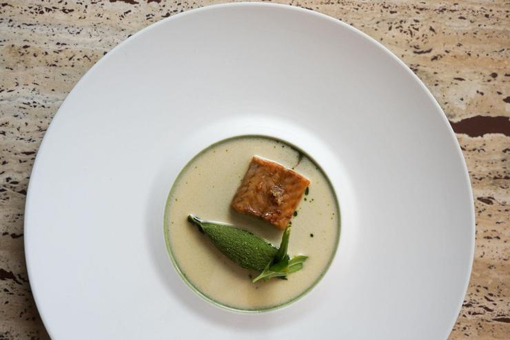 Mallory Gabsi, candidat de la saison 2020 de Top Chef, prend le contrepied de la coolitude de l’est parisien et s’installe à deux pas de l’Arc de Triomphe, dans une salle chic et rutilante comme le pont d’un voilier en bois de seulement 28 couverts. Formé au Sea Grill d'Yves Mattagne (2 étoiles Michelin à Bruxelles), le jeune prodige né en 1996 travaille avec mordant et esprit de compétition dans sa cuisine ouverte, avec le désir d’en mettre plein la vue. Contrastes inattendus comme ce dessert mêlant chocolat et topinambour signé Margot Delacroix, textures variées et assiettes taillées comme des sculptures (dômes de foie gras, trio de betteraves, crème de ricotta, gel de cerise noire et condiment de haricot fermenté), la course aux étoiles est lancée. Sans oublier son pays d’origine et les classiques belges réinventés telle l’anguille au vert. Le chef fait un petit tour en salle pour présenter au moins l’une de ses créations à une clientèle conquise, étonnamment jeune. Haut niveau de cuisine et élégance du décor placent la table du jeune Belge parmi les toutes meilleures du quartier de l'Étoile.