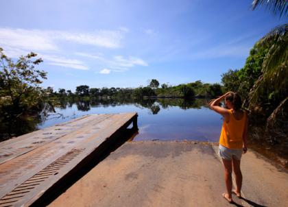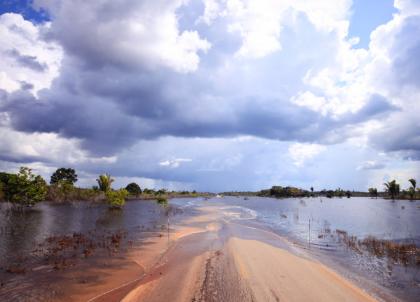 Il est déjà 15h, il fait chaud, humide. Le thermo indique plus de 40° et les moustiques s’invitent à la fête. Arrivés de l’autre côté, on reprend la route. Pas pour longtemps, à nouveau la route disparaît sous le fleuve sorti de son lit. Cette fois-ci, c’est un camion qui permet de faire la traversée. Le chauffeur m’explique que la route est submergée sur plus de 30 kilomètres parfois sous plus de deux mètres d’eau, et que pour traverser cela me coutera 350 R$ soit plus de 120€. Je le regarde, lui et son camion, pensant : deux mètres d’eau ? tu me prend vraiment pour un touriste ? t’as vu ton camion ? il est pas assez haut pour passer. En plus, tu te gaves mon vieux, 120€ pour 30 km. Pas mal !Â