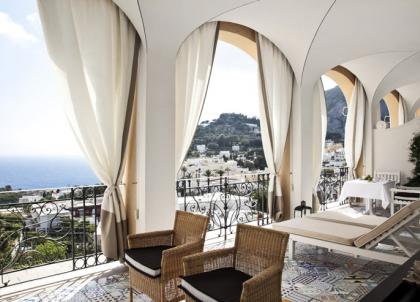Qui pourrait croire que le tranquille village d'Anacapri à l'est de l'île recèle en son cœur un hôtel aussi luxueux, aussi classieux, aussi sophistiqué que ce Capri Palace, ultime refuge de l'élégance capriote. Avec son Beach Club comme posé sur les flots bleux de la Méditerrannée, ses deux restaurants étoilés (dont L'Olivo qui en exhibe fièrement deux), son vaste spa et ses chambres au luxueuses, le Capri Palace Hotel & Spa place la barre si haut qu'on ne voit plus très bien quel hôtel pourrait encore rivaliser avec lui. Le lieu rêvé pour une demande en mariage ou une lune de miel.