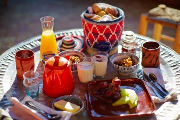 A noter que le tarif inclut les transferts pour l’aéroport (ce qui évite de se faire extorquer ses dirhams par des taxis peu scrupuleux) et de copieux petits déjeuners servis au bord de la piscine sur des tables nappées de blanc. Un très bon rapport qualité-prix en somme.
