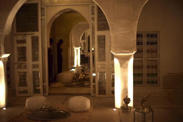 On découvre derrière les épais rideaux blancs dissimulant l’entrée du reste du riad un lieu splendide, impeccablement éclairé, aussi lumineux que les ruelles environnantes sont sombres, respirant à plein la sérénité et la quiétude là où le quartier révèle une ambiance bouillonnante et interlope à la nuit tombée.