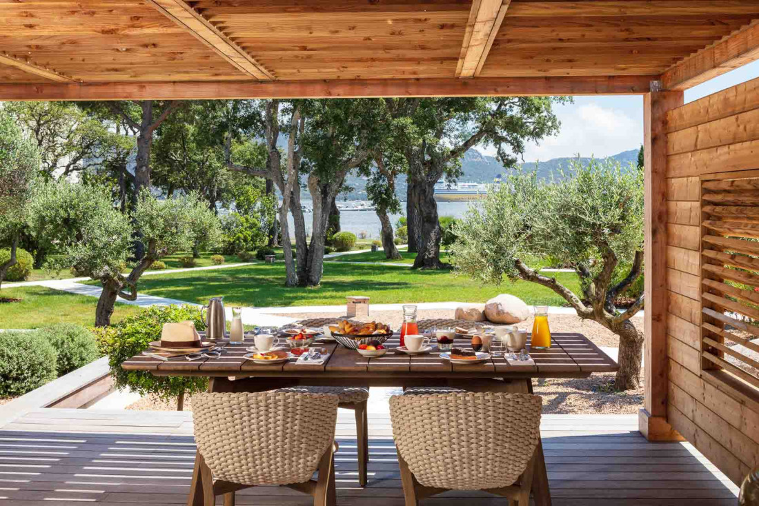 Il y propose une cuisine vibrante, inspirée par les senteurs du maquis et ornée de produits saisonniers soigneusement choisis, accompagnée d'une sélection pointue de vins corses. Les chambres et suites, véritables belvédères sur le golfe du Valinco, célèbrent l'union du bois blond, du marbre blanc et des textiles immaculés, contraste saisissant avec le bleu horizon et le jardin méditerranéen qui s'étend en contrebas. Du chauffe-biberon pour les bébés à la chaise haute pour les petits, chaque enfant est accueilli avec un kit taillé pour lui, qui permettra aux parents de ne pas stresser.Â