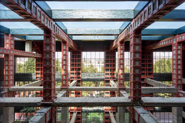Si lors d'un road trip en Géorgie vous pouvez vous arrêter au Stamba Hotel, allez-y ! Situé au cœur du quartier vibrant de Vera Tbilissi dans la capitale, l'adresse est une icône de l’hôtellerie contemporaine. Ancienne imprimerie des années 1930 au style brutaliste, dont on voit encore les chaînes qui portaient les journaux dans le lobby-cathédrale, ce boutique-hôtel à Tbilisi allie espaces démesurés, design industriel raffiné et une ambiance culturelle unique. Dès l’entrée, l’immense réception, ornée de végétation grimpante, chandeliers vintage et mobilier des années 30, donne le ton.