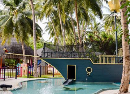 L’ambiance est décontractée, et même le staff évolue pieds nus. Dans les 27 villas sur la plage et les 88 sur pilotis, des touches jaune ou rose vif égaillent les chambres, des accessoires de snorkelling sont pendus au-dessus du lit et une boule à facette illumine la salle de bain, une vraie référence à la culture joyeuse et colorée des Maldives.