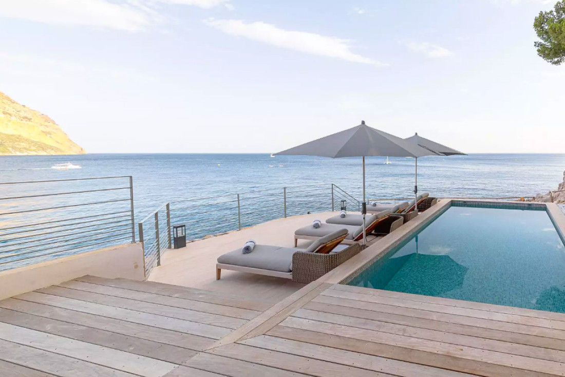 La villa ? Un joyau architectural posé sur la roche, au bord d’une piscine d’un bleu outrancier face à l’océan. Quatre chambres avec terrasses, deux cuisines dont l’une ouverte sur la mer, une salle de sport, un hammam, une conciergerie, magnifient cette expérience divine.