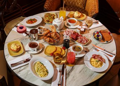 Le brunch ? C’est au Bar 19.20 que se déguste l’un des meilleurs brunch de Paris, buffet servi avec boisson chaude et jus de fruits pressés, un moment également appréciable depuis le doux patio extérieur de l’hôtel aux mosaïques d’époque et parquet en bois d’ébène. Les festivités débutent dans le restaurant étoilé Akira Back sur une sélection salée du chef Gérald Poirier : fruits de mer, sushis et california rolls, charcuteries, fins fromages, pâtes fraîches, mini burgers et autres wraps, parmi des mets d’inspiration japonaise et libanaise, et accompagnés de pains L’Étoile du Berger. Un corner avec chef propose la confection de salades sur mesure, pour certaines directement cuisinées à même une meule de parmesan. Le menu propose également la commande d’œufs préparés selon convenance, ainsi qu’un plat chaud renouvelé chaque dimanche, ce jour fricassée de volaille et riz basmati au curry, gingembre et noix de coco. Pour le buffet sucré, rendez-vous dans l’Alcôve avec les créations de la cheffe pâtissière Hélène Kerloeguen. Les viennoiseries, cakes et délicieux biscuits côtoient une farandole de desserts, parmi lesquels on retrouve ses pâtisseries signature.