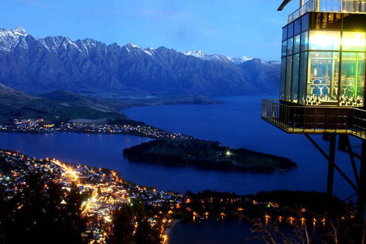 Le restaurant Skyline de Queenstown en Nouvelle-Zélande propose une cuisine locale influencée par quelques classiques internationaux au sein d'un buffet et d'un dîner et surtout une expérience à ne pas manquer : une vue fabuleuse sur la ville, entre ciel et terre.