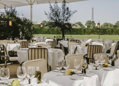Dans une rue adjacente au Faubourg Saint-Honoré, l'établissement 5 étoiles Les Jardins du Faubourg à Paris dévoile une terrasse estivale discrète, nichée derrière les corniches de style Louis Philippe de l'ancien hôtel particulier. Une verrière s'étend jusqu'au jardin intérieur, où jasmin et espèces exotiques entourent un majestueux néflier du Japon, seigneur de la terrasse de Il Giardino. Que ce soit pour le déjeuner ou le dîner, il n’est pas rare d’apercevoir des vedettes, attirées par le charme confidentiel de cette terrasse du 8e arrondissement invisible de l’extérieur.